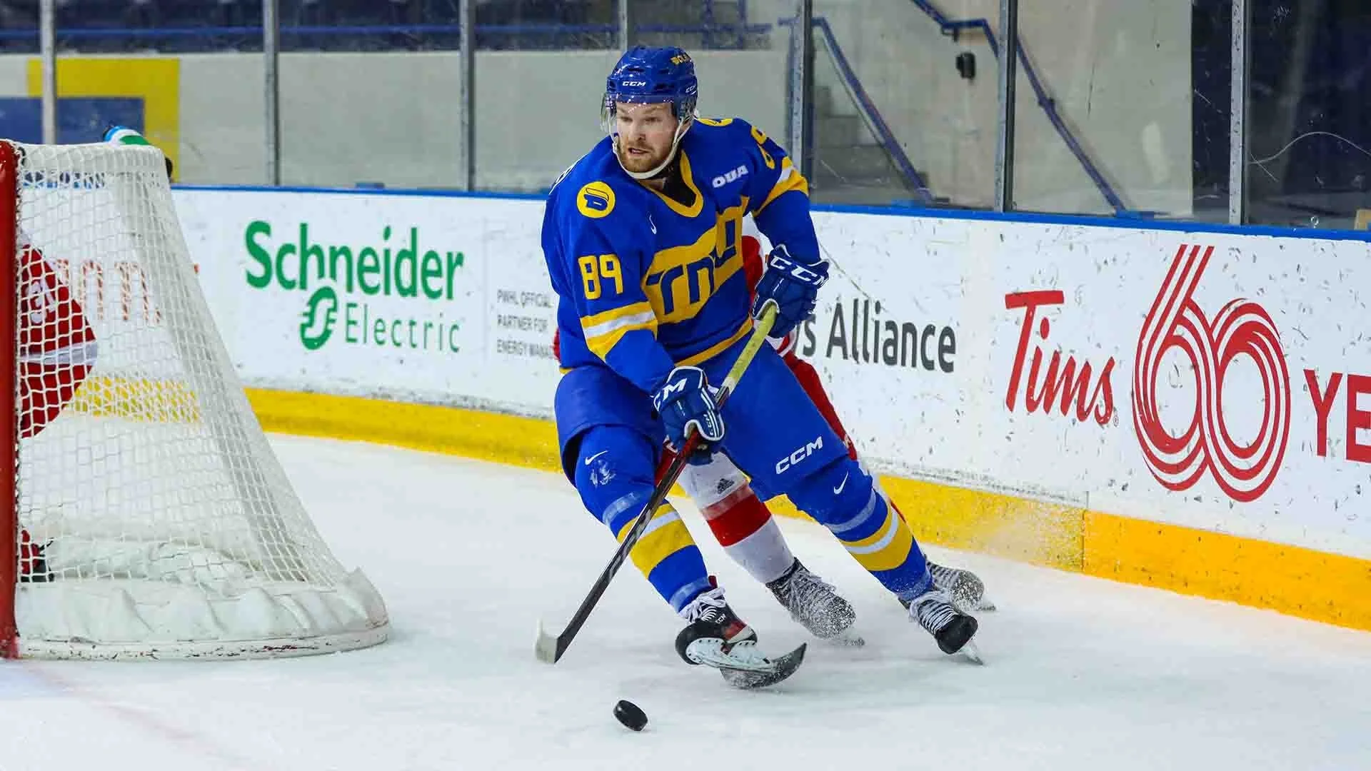 The third period featured a few early odd-man rushes that TMU should have capitalized on. On the other side of the ice, the Dinos Jake Gricius had a golden chance in the slot to break the tie, but sophomore goaltender Kai Edmonds swatted it away with a stellar blocker save.